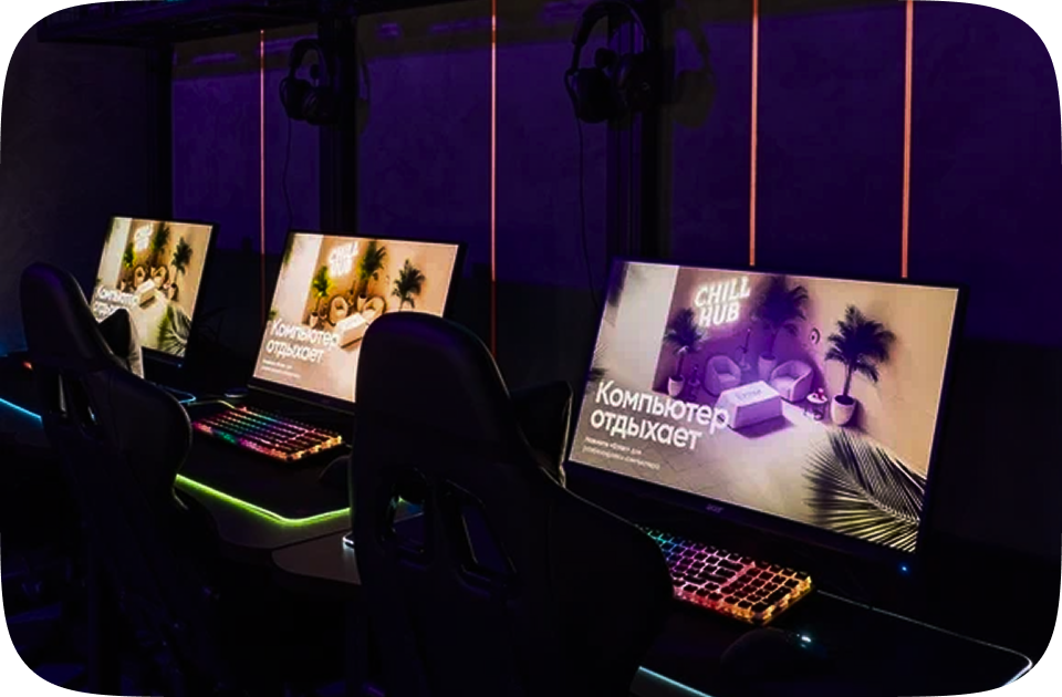 Это мощные игровые ПК, уютное кафе, вкусная кухня, дымный кальян, и пространство для встреч. Мы верим, что каждый гость достоин лучших эмоций, заботы и атмосферы, в которую хочется возвращаться снова и снова.